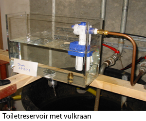 In deze laboratoriummeetopstelling wordt de geluidafgifte van sanitaire installaties onderzocht. Het te meten object wordt in een speciale opstelling ingebouwd waarbij een bepaalde hoeveelheid water onder voorgeschreven druk door het object stroomt. De toevoerleiding is aan de “buitenkant” op een wand van een meetruimte gemonteerd. In die meetruimte wordt het geluidniveau gemeten. Voorbeelden van te onderzoeken objecten zijn appendages (kranen, toiletreservoirs) en toevoerleidingen (stromingsgeluid of invloed van bevestigingsbeugels).