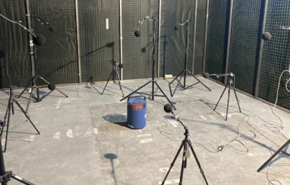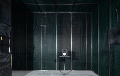 De wanden en het plafond van de semi-anechoïsche kamer zijn bekleed met speciale geluidsabsorberende materialen, die reflecties vrijwel volledig elimineren.  Hierdoor kunnen het geluidsvermogen en de richtingskarakteristieken nauwkeurig worden bepaald in overeenstemming met de norm ISO 3744.