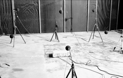 De meting van het geluidsvermogen in de semi-anechoïsche kamer gebeurt volgens ISO 3744.