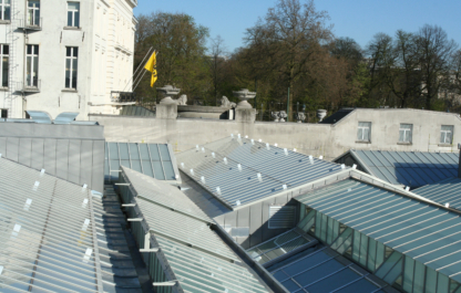 Musea zijn plekken waar omwille van de preventieve conservering van de kunstwerken strenge en soms variabele eisen aan het binnenklimaat gesteld worden. Tijdens de haalbaarheidsstudie voor de restauratie van de glasoverkapte exporuimten werden metingen en simulaties uitgevoerd van de hygrothermische klimaatparameters en van de beschikbaarheid van daglicht. Deze simulaties lagen aan de basis voor het uitwerken van een innovatief daksysteem dat een goede zonnewering en thermische isolatiekwaliteit combineert met het behoud van hoge en regelbare daglichttoetreding, goede kleurweergave en een respect voor het originele karakter van het monument.