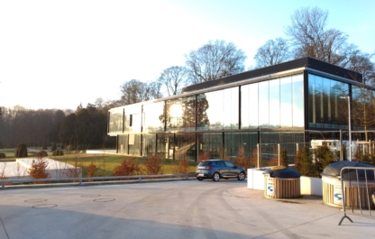 Het nieuwe inkompaviljoen is een sterk beglaasd volume met een buitenzonnweringssyteem op de oost- en zuidgeorienteerde gevels. Het voorkomen van het gebouw in zijn omgeving wordt sterk bepaald door de mate van doorzicht door de beglaasde structuur, en door de reflectie van omgevingselementen.