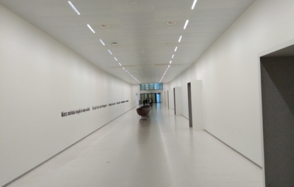 De verbinding tussen het bestaande gedeelte en het nieuwe paviljoen omvat enkele auditoria en een tijdelijke tentoonstellingsruimte waarbij spraakverstaanbaarheid en geluidisolatie aandachtspunten waren. Een bijzondere aandacht ging ook naar de zone van de tijdelijke tentoonstellingsruimte en de galerij tussen het inkomgebouw en het bestaande museumgebouw. Hier worden twee functies bij elkaar gebracht met een mogelijk akoestisch conflict: de galerij is een doorgang met veel passage; deze bezoekers gaan niet noodzakelijk naar de tentoonstellingsruimte, die hierdoor mogelijk hinder ondervindt van de galerij. Een goed geluidabsorberend plafond in de centrale galerij / onderdoorgang en een eerder beperkte interface tussen deze circulatie en de museumruimten was een oplossing voor dit probleem.