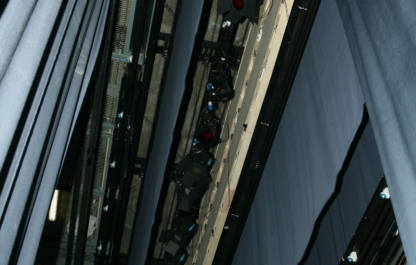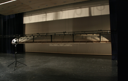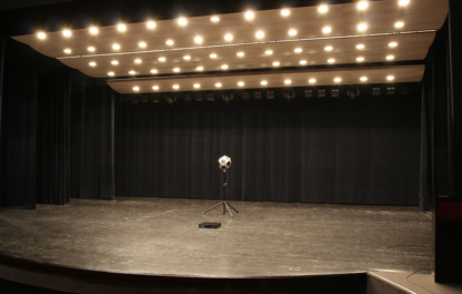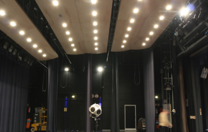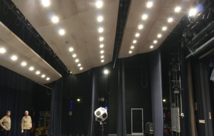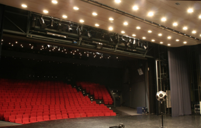 De grote zala van CC Scharpoord te Knokke wordt ook gebruikt voor concerten, waarbij men de toneeltoren horizontaal afsluit met een podiumreflector.