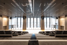 • Auditorium: met inklapbare tribune biedt deze plaats aan 516 deelnemers.  Auditorium omgeven door bufferruimtes (foyer, circulatie, …) zodat ook hier eenvoudig een hoge geluidisolatie naar de buurt mogelijk is